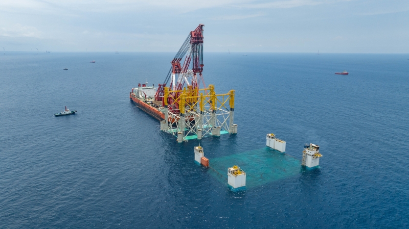日前,由中國能建廣東院EPC總承包建設的青洲五、七海上風電場海纜集中送出工程順利完成海上換流站下部結構安裝,實現萬噸級海上鋼結構在深遠海復雜環境安裝就位,為后續海上換流站浮托安裝奠定了堅實基礎。