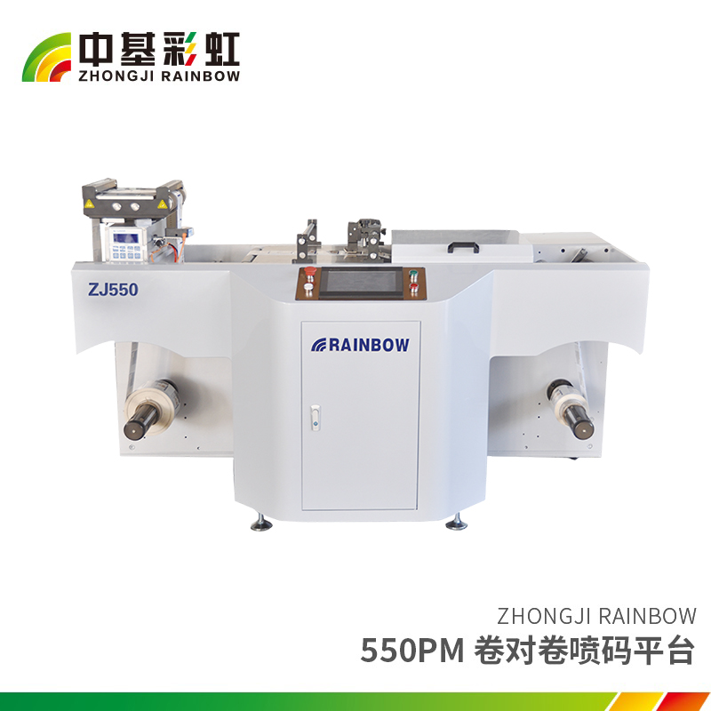 自主研發高效率噴碼平臺、全伺服收放卷錐度張力系統,進口糾偏系統,觸摸屏控制系統,可以在紙張、不干膠、PET、PVC、PE、PP等多種承印物表面噴印各種個性化信息,包括中文、英文數字、一維條碼、二維碼等。